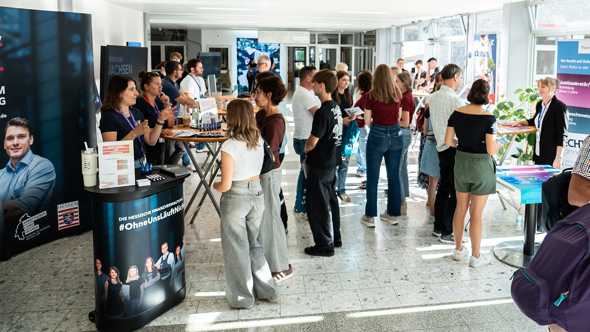 Neben der Steuerverwaltung und der Justiz waren auch der Landesbetrieb Bau und Immobilien Hessen (LBIH), das Hessische Competence Center (HCC) und die Hessische Zentrale für Datenverarbeitung (HZD) mit jeweils einem Stand vertreten.